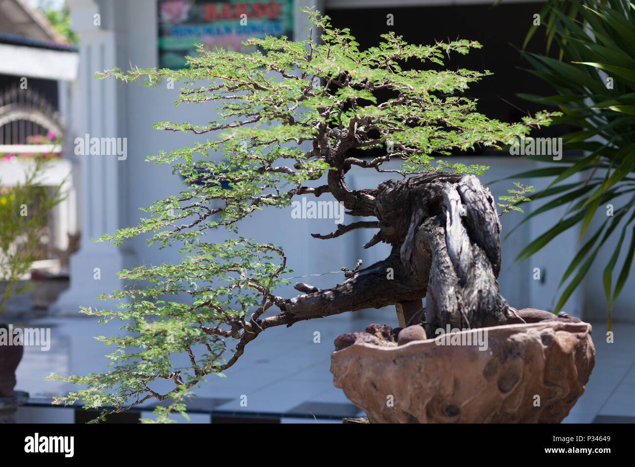 Bonsai árbol en una maceta hecha de arcilla para plantas decorativas vender en la planta de vendedor foto tomada en Jakarta Indonesia